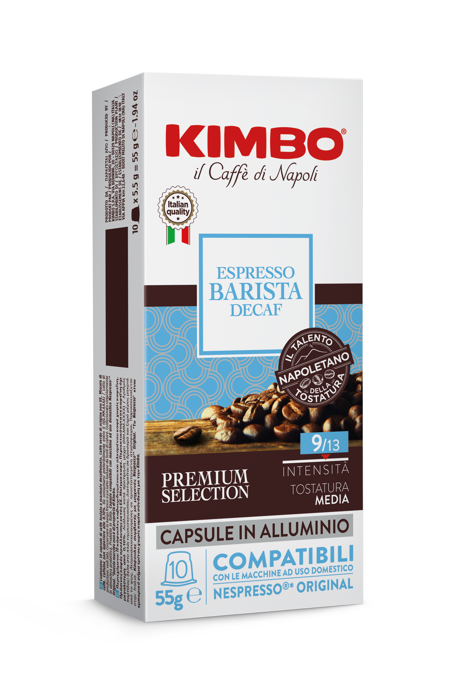 Kimbo Decaffeinated Aluminium Nespresso Compatible Capsules 10x55g