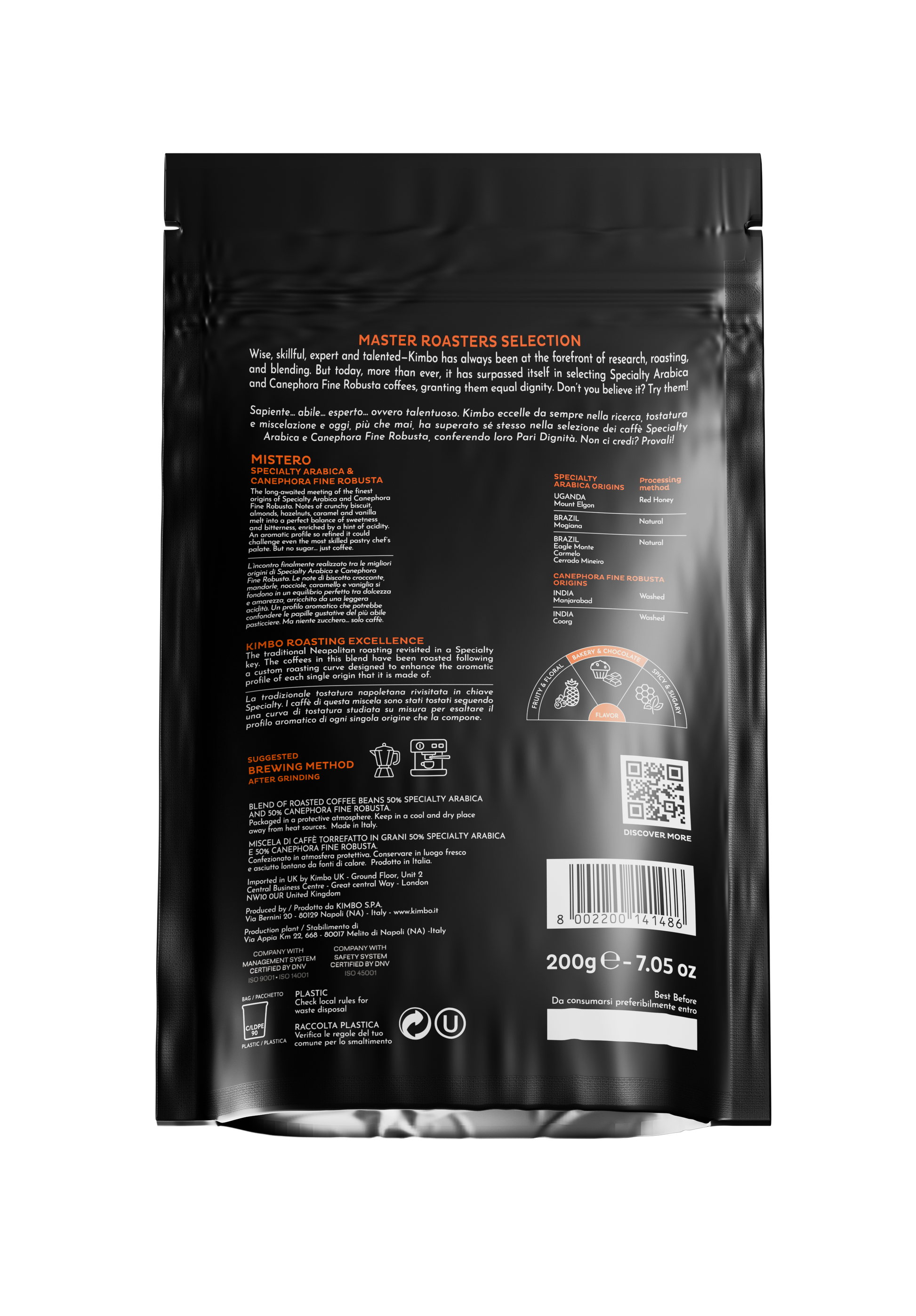 It was born from the unexpected encounter between Ugandan and Brazilian Arabica and Indian Robusta, creating an enveloping and intense blend. The notes of crunchy biscuit, almonds, hazelnuts, caramel and vanilla blend in a perfect balance between sweetness and bitterness, enriched with a slight acidity. The warm and welcoming body gives way to a long aftertaste of biscuit and chocolate, which slowly reveals its fascinating complexity, just like a mystery to be discovered.